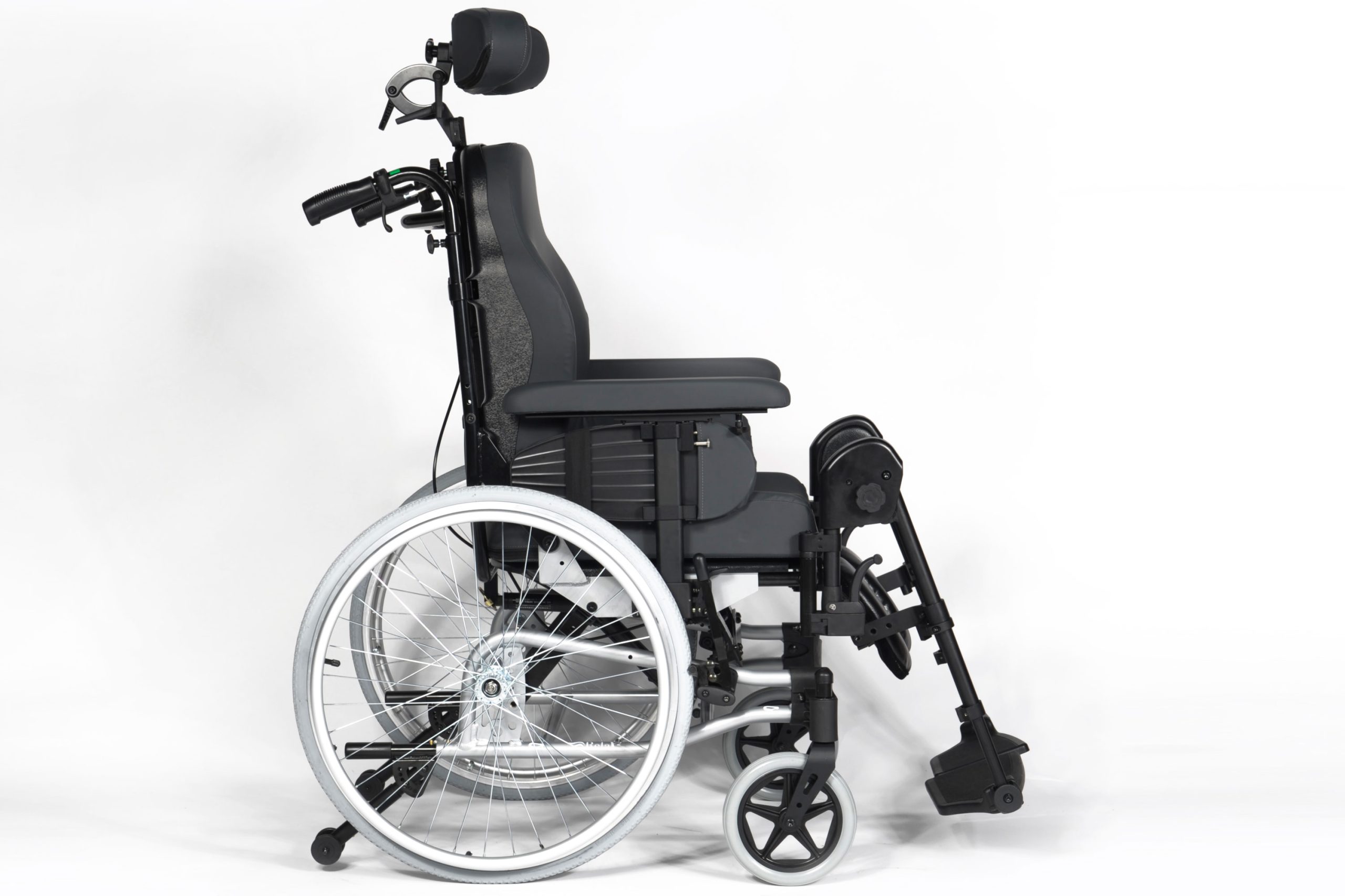 Permite um excelente posicionamento garantindo o máximo conforto e comodidade graças à composição da sua estrutura com material anti-escaras e, ao seu sistema de basculação e reclinação do assento e do encosto.