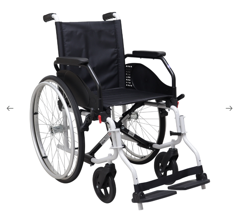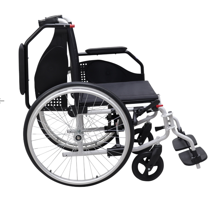 O modelo Transit inclui rodas traseiras de 300 mm maciças. Experimente a nossa cadeira de rodas manual de alumínio e descubra uma nova forma de mobilidade com segurança e estilo.