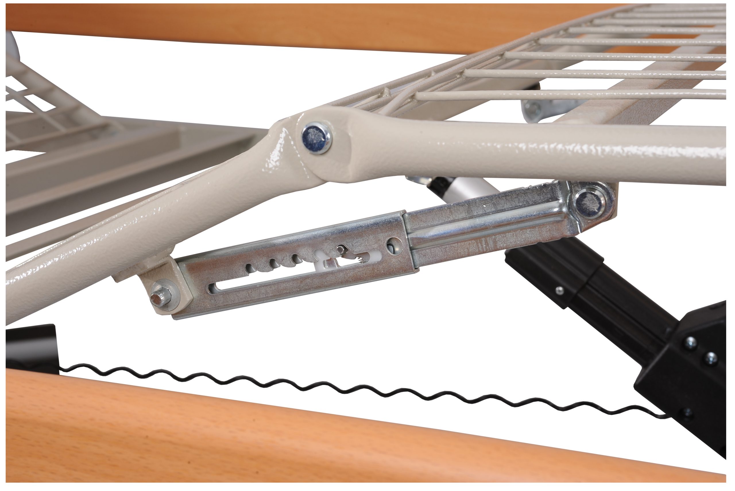 Funções ajustáveis através de sistema elétrico – altura, estrado superior, estrado inferior, este último com curvatura ao nível dos joelhos.