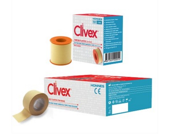 Adesivo de óxido de zinco (adesão forte e duradoura). Facilmente rasgável longitudinal e transversalmente.